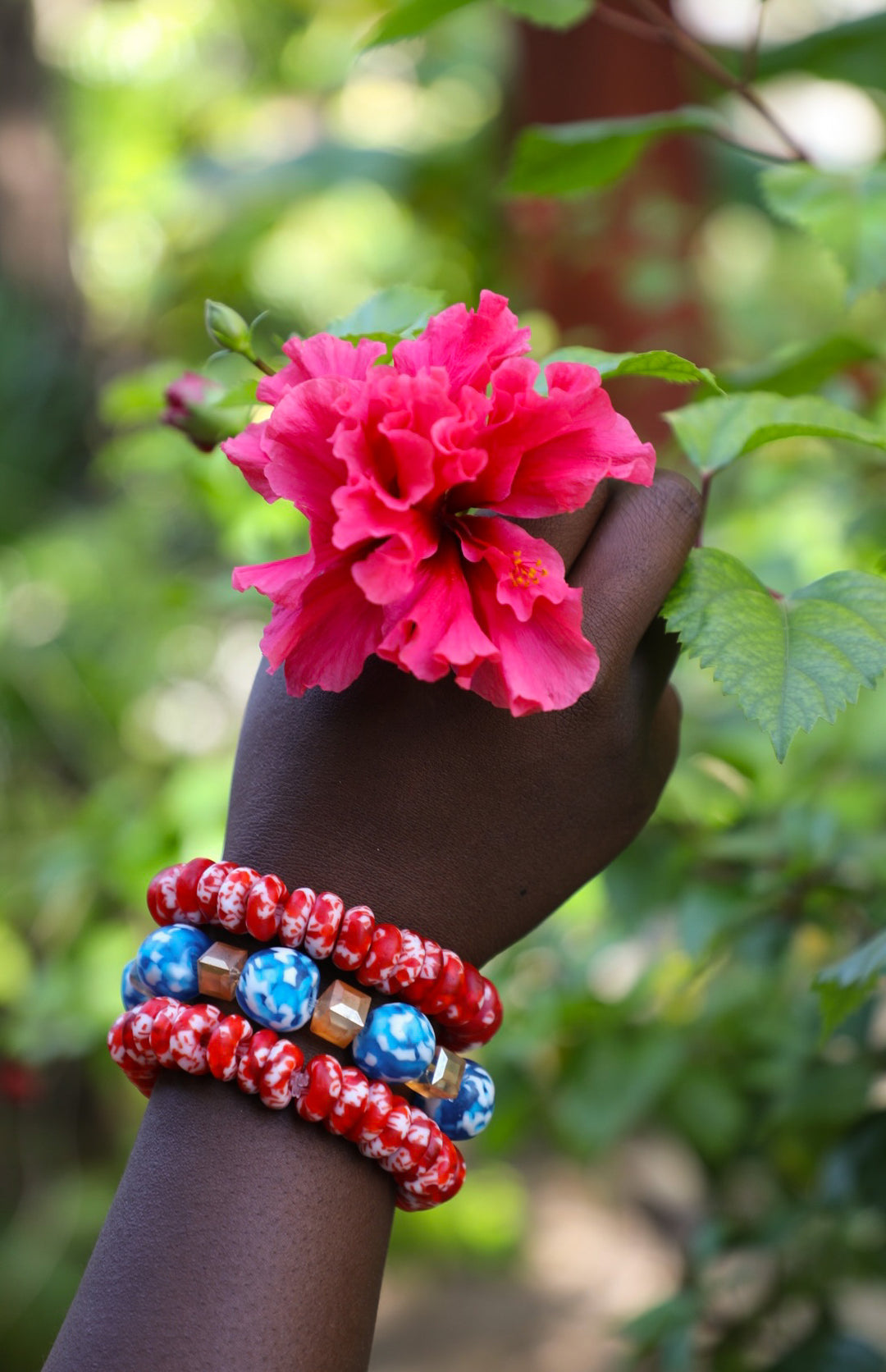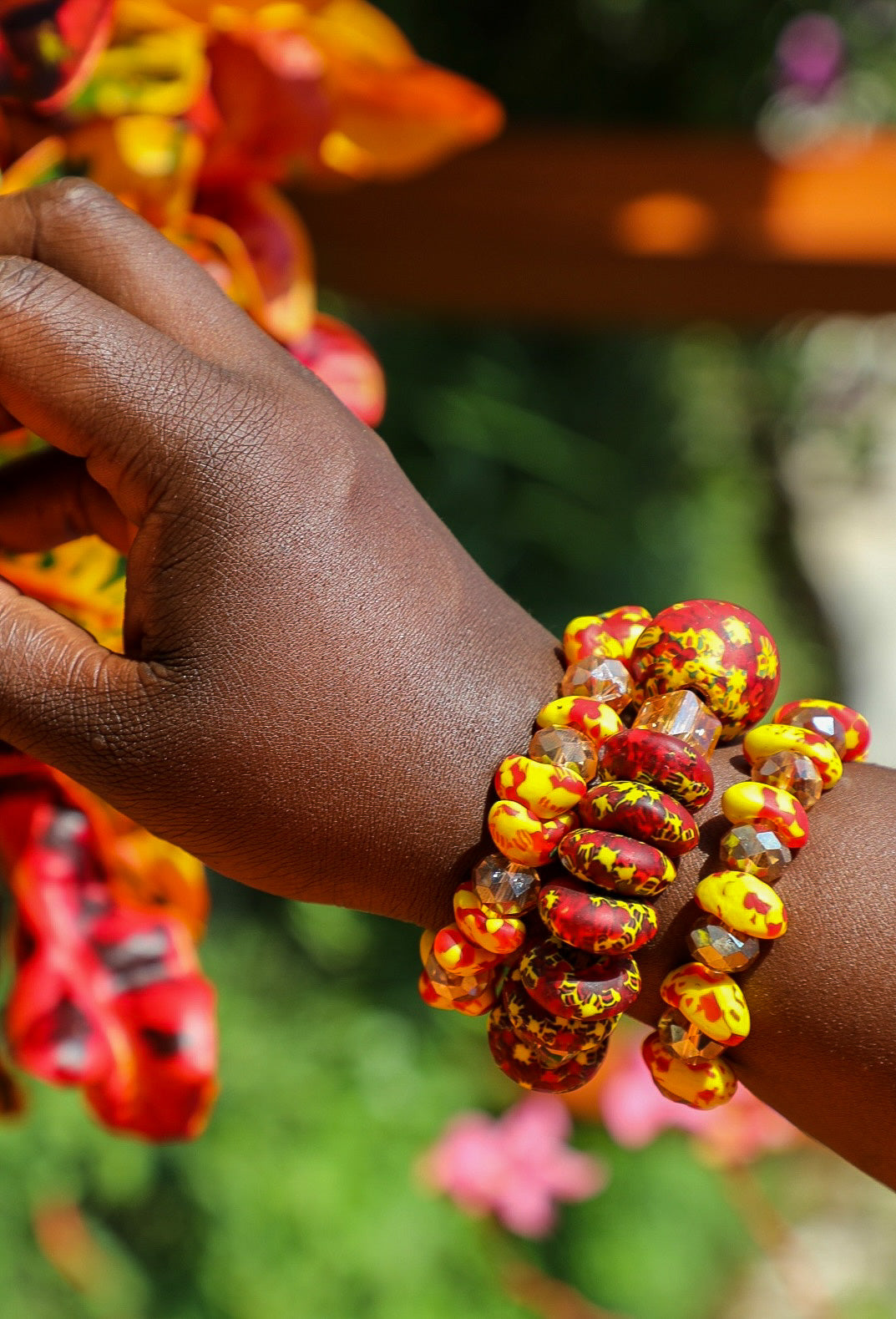 Introducing our Live in color Collection – This collection features vivid hues of blue, fiery red, and sunburst yellow. Each bracelet is uniquely crafted with a mix of beads, and playful patterns, symbolizing the diverse and vibrant experiences that color life.