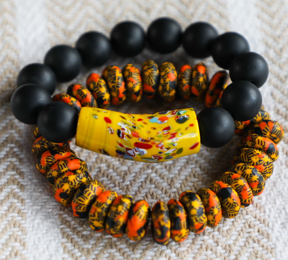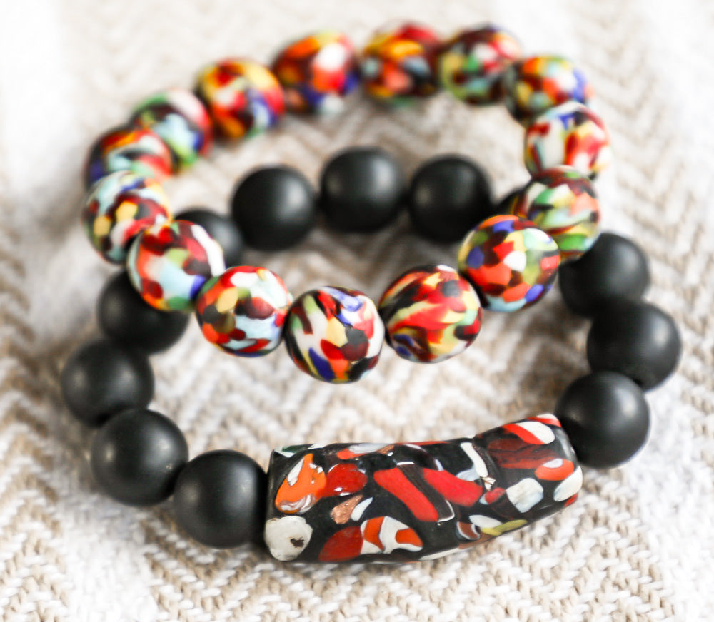 The Be Bold Be Hopeful Collection is a fusion of boldness and optimism, featuring bracelets with strong, impactful designs and vibrant colors. Robust center beads surrounded by smaller black beads symbolize strength, while bright and uplifting hues convey a sense of hope. Each bracelet in this collection is crafted to embody the spirit of daring optimism, encouraging wearers to embrace boldness in the pursuit of a brighter future.
