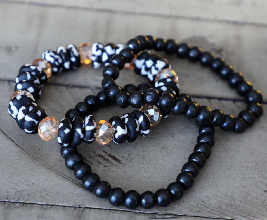 This set includes three bracelets: two featuring a mix of yellow and red stones with sparkling crystal accents, and one entirely made of crystals for added elegance. These bracelets bring a bright, colorful touch to any outfit, perfect for stacking or wearing individually.