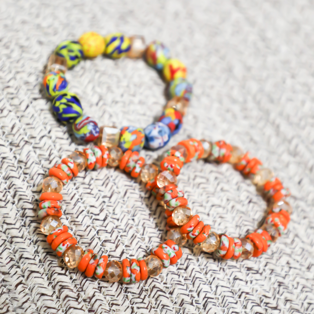 Introducing our Live in color Collection – This collection features vivid hues of blue, fiery red, and sunburst yellow. Each bracelet is uniquely crafted with a mix of beads, and playful patterns, symbolizing the diverse and vibrant experiences that color life.